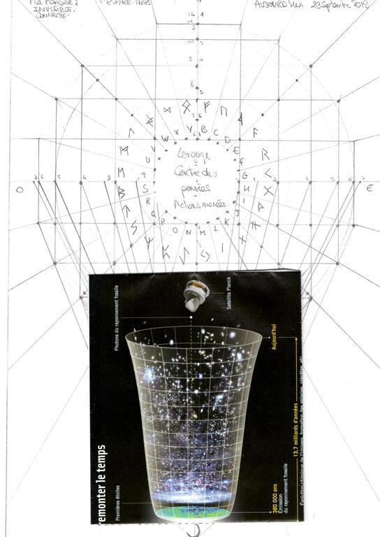 A ce moment là, j'ai remarqué que ce qui manquait au centre se trouvait simplement page 12. Je l'ai représenté ici. En superposant "Et la lumière fût" à ce dessin, le tour est joué !