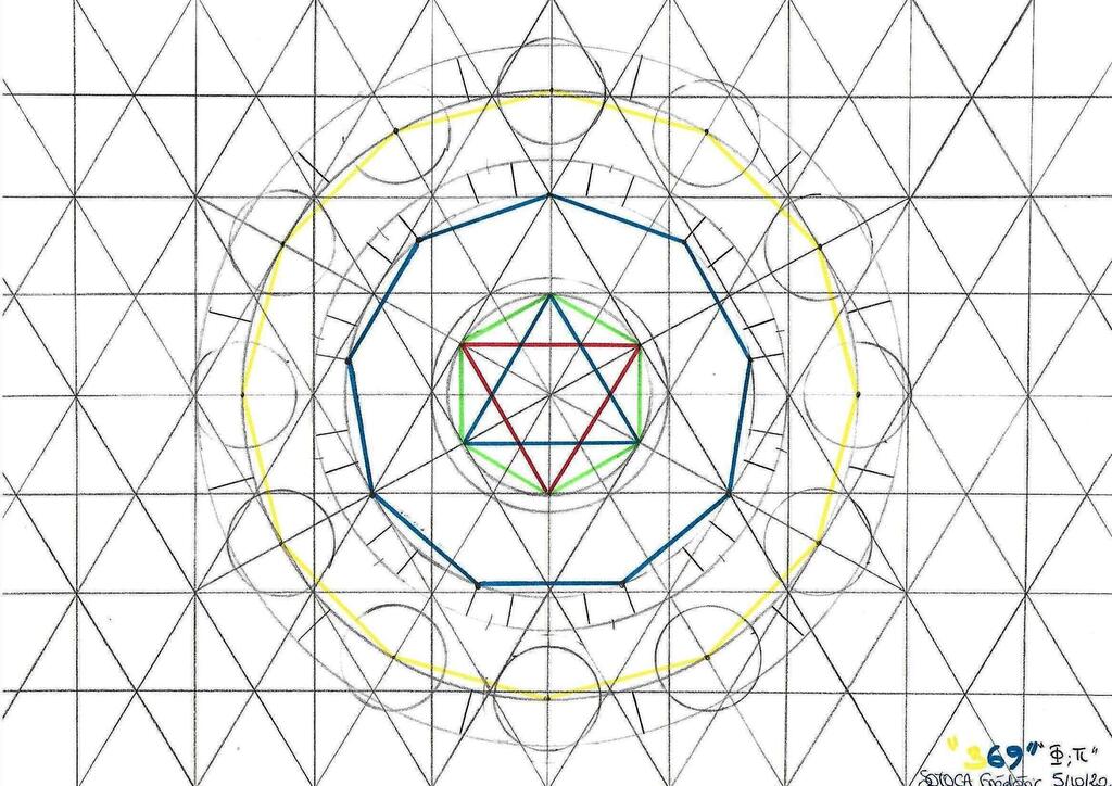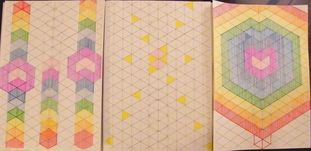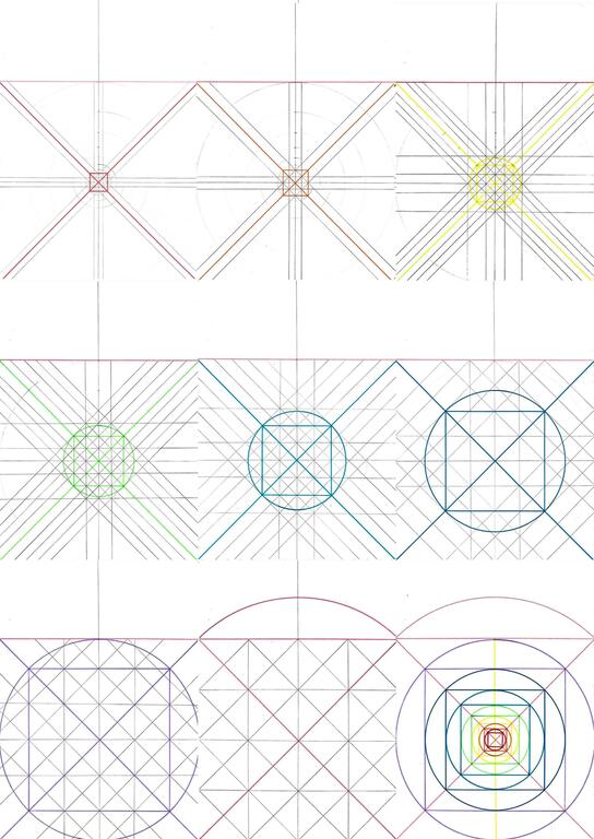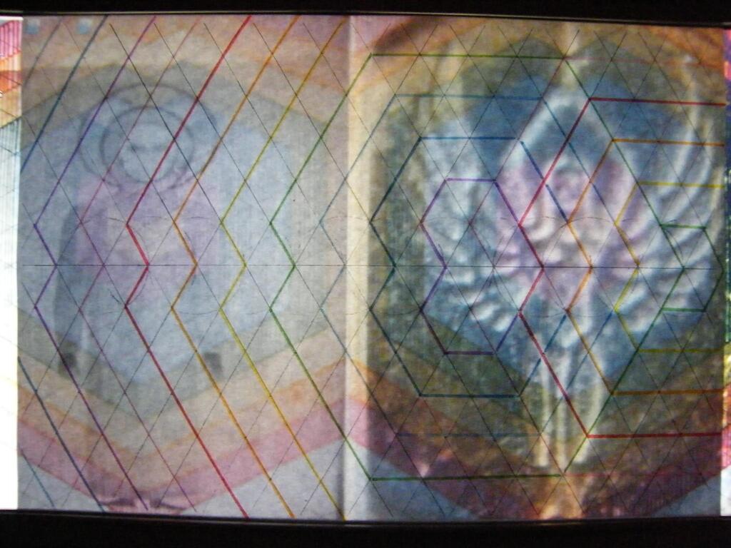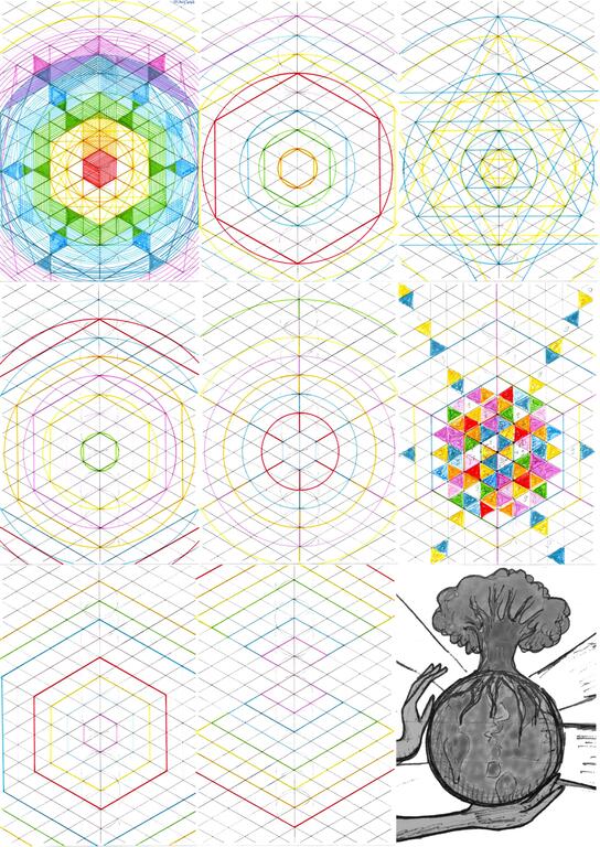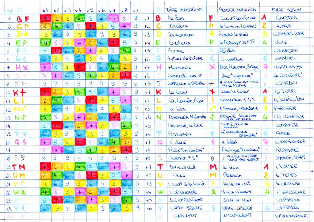 On obtient rapidement la grille visuelle des couleurs (à noter un nouvel autostéréogramme sur ce dessin, magique), et si ce qui est en haut est comme ce qui est en bas, alors on retrouve la grille "du jardin", cette fois-ci dans des proportions "divines", une grille qui se transformera bientôt en page blanche pour chacun d'entre nous car il faut bien se l'avouer, "et le rêve devient réalité" :