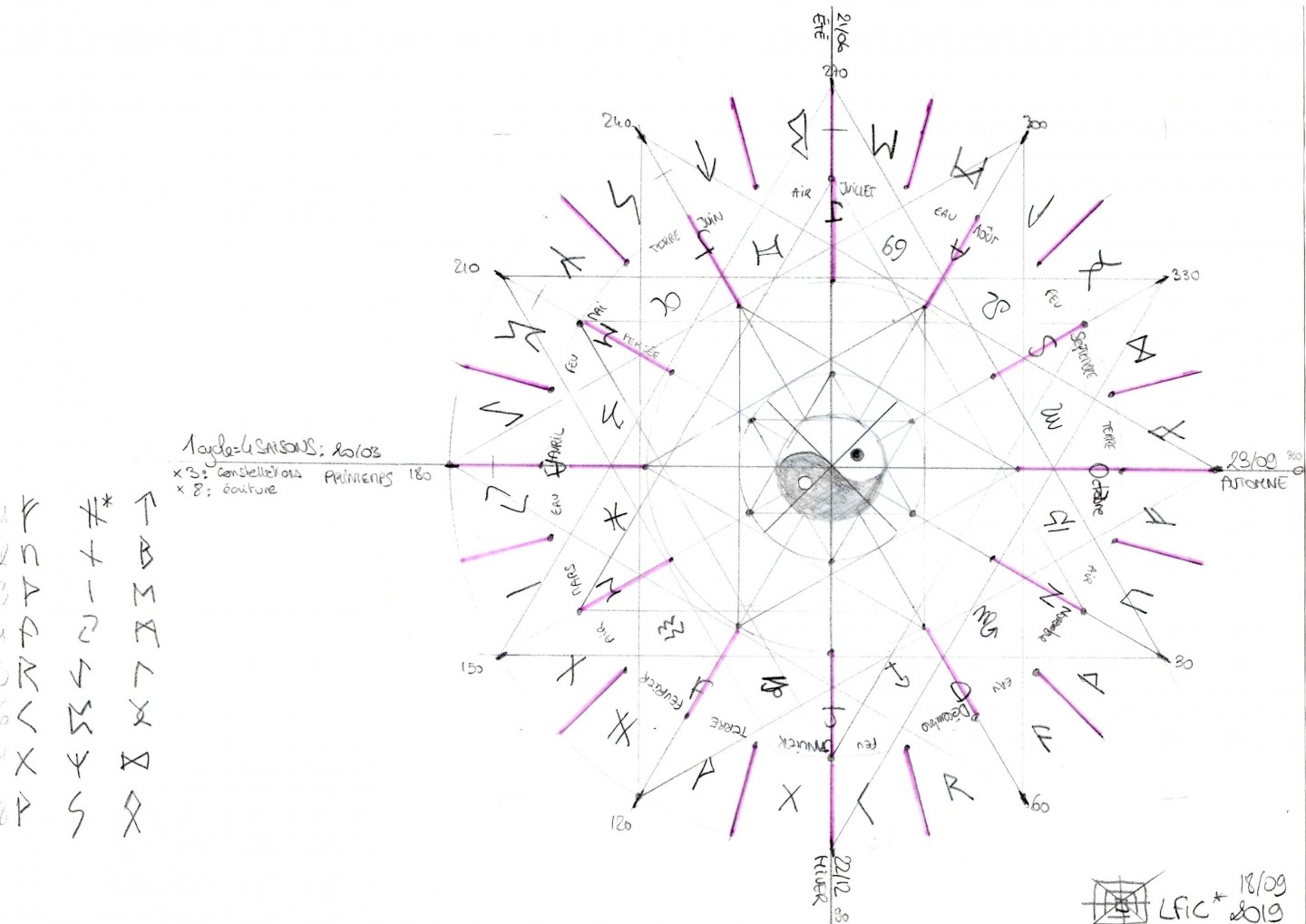 Nous avons donc trois positions, Solstice "Bas", Équinoxes "Milieu" et Solstice "Haut" qui jouent le rôle d’intermédiaires entre les quatre saisons.